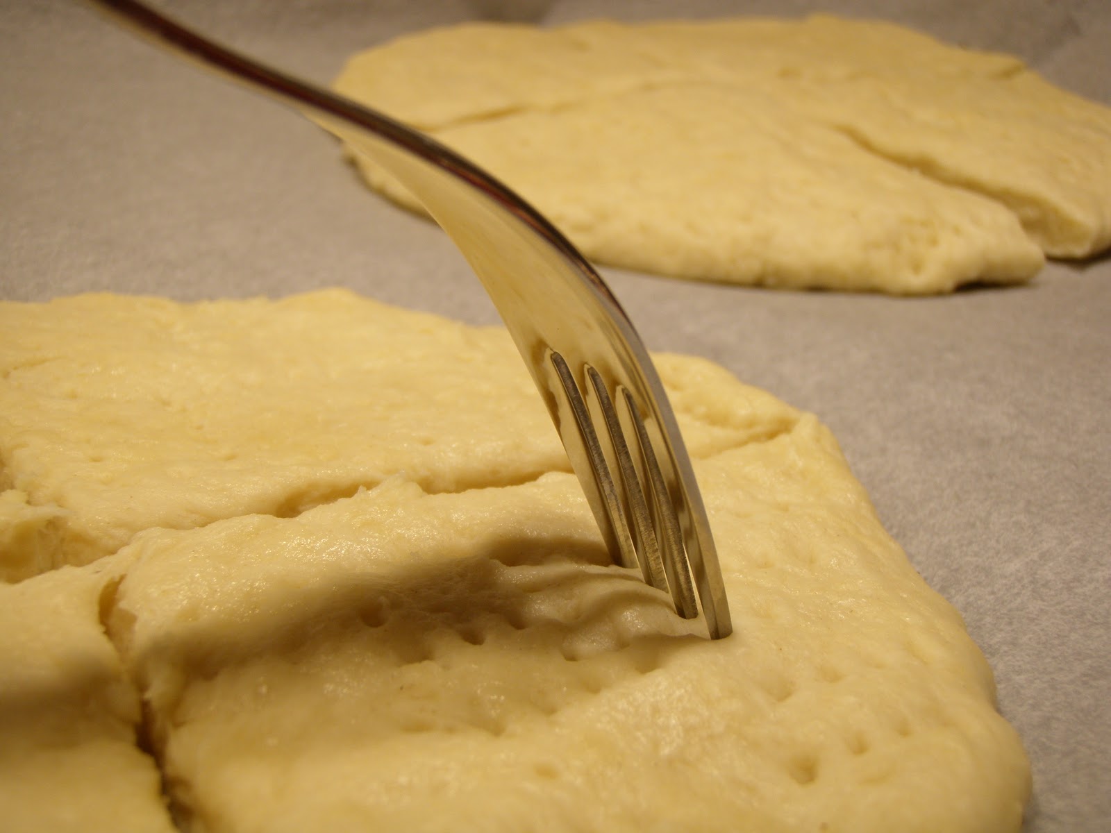 Tee taikinasta pellille kaksi pyöreää, litteää, halkaisijaltaan noin 10-15 cm leipää